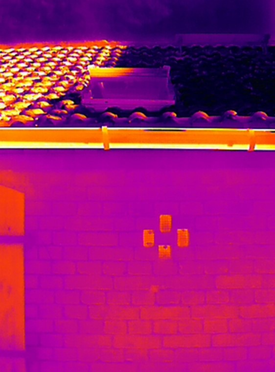 Beispielaufnahmen Verstopfte Dachrinne Abgasanlage im Schornsteinkopf def. Schlechte Wärmedämmung und weitere Probleme Wärmebild eines Brandes in 8 km Entfernung |